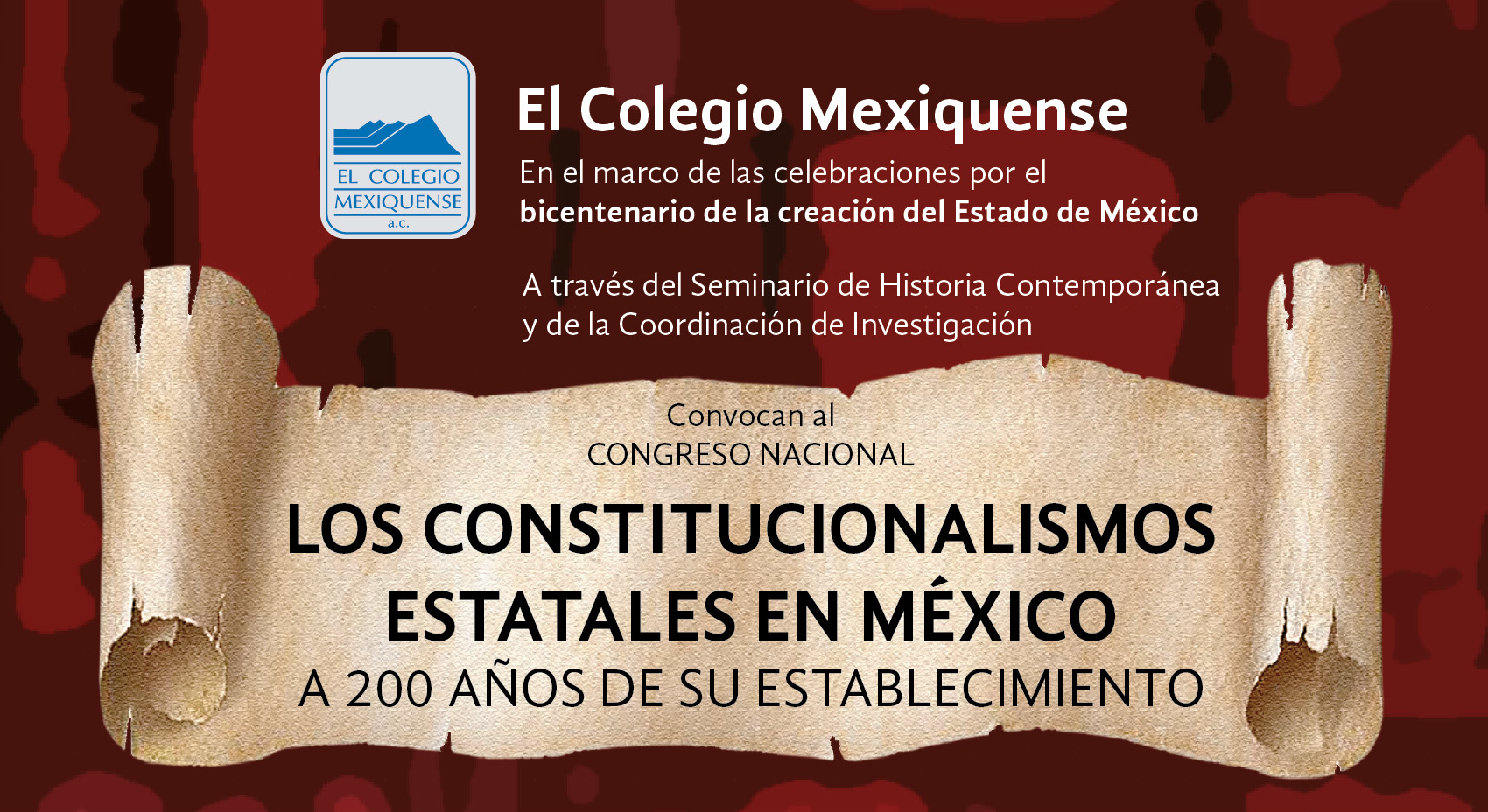 Con el propósito de analizar las contribuciones de los estados a la construcción del federalismo mexicano en los momentos en que la nación iniciaba y camino de la conmemoración del bicentenario del Estado de México, El Colegio Mexiquense y el Poder Judicial del Estado de México organizan el congreso «Los constitucionalismos estatales en México a 200 años de su establecimiento», programado del martes 27 al jueves 29 de junio en Santa Cruz de los Patos, sede del centro de investigación.