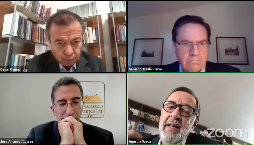En sesión por plataforma digital, el embajador Gerardo Traslosheros expuso la conferencia “El mundo después del Covid-19”; César Camacho resalta el valor de la tecnología para difundir el conocimiento.