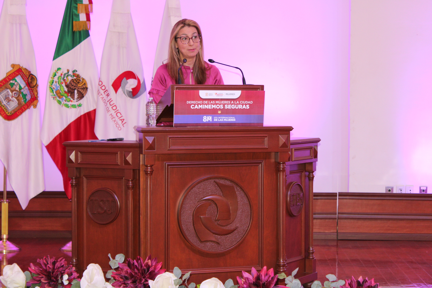 Carolina Pedrotti, profesora-investigadora de El Colegio Mexiquense, dio la conferencia «Mujeres, espacio público y derecho a la ciudad, ¿dónde estamos?», en la presentación de la Guía de Recuperación de Espacios Públicos con Perspectiva de Género