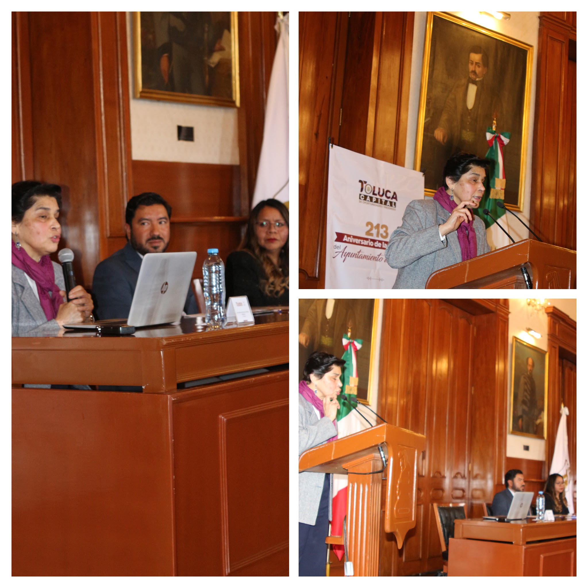 *La investigadora María del Carmen Salinas Sandoval, de El Colegio Mexiquense, ofreció una conferencia en el salón Cabildos del Palacio Municipal para conmemorar el 213 aniversario del ayuntamiento de Toluca