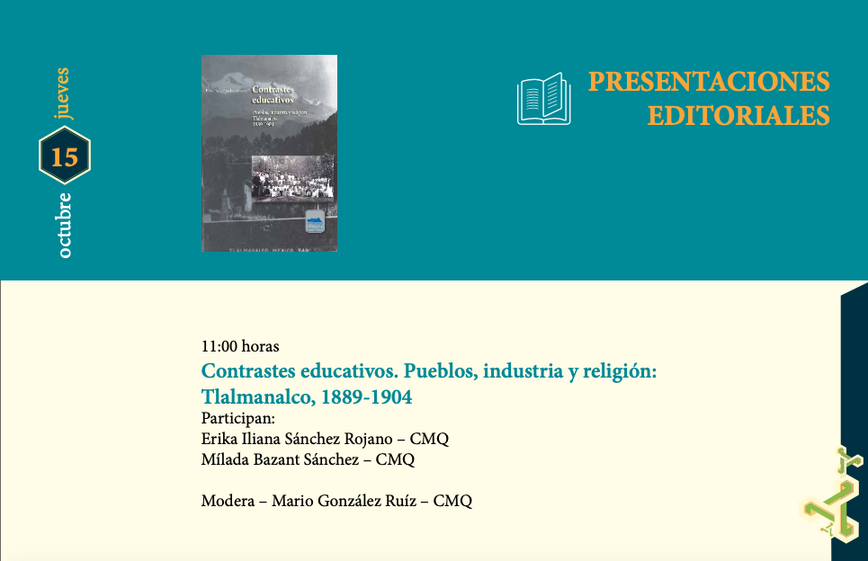 Presentación de libro: Contrastes educativos. Pueblos, industria y religión: Tlalmanalco, 1889-1904