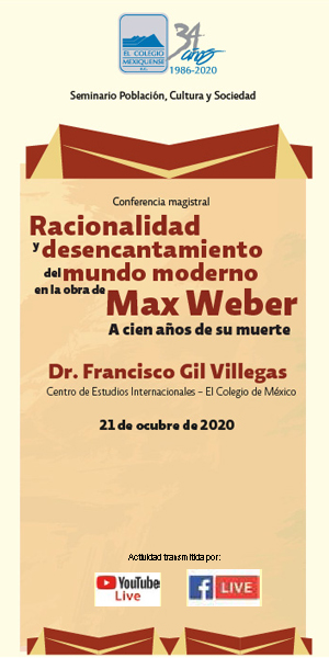 Conferencia Magistral: Racionalidad y desencantamiento del mundo moderno en la obra de Max Weber. A cien años de su muerte