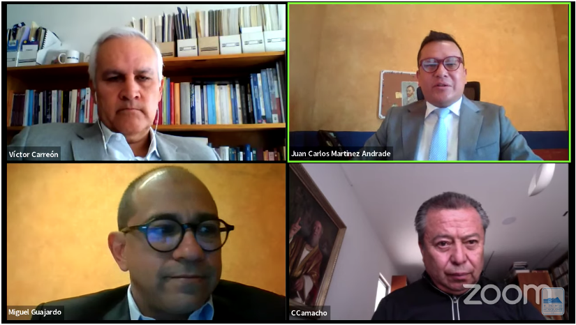 En sesión por plataforma digital, el embajador Gerardo Traslosheros expuso la conferencia “El mundo después del Covid-19”; César Camacho resalta el valor de la tecnología para difundir el conocimiento.
