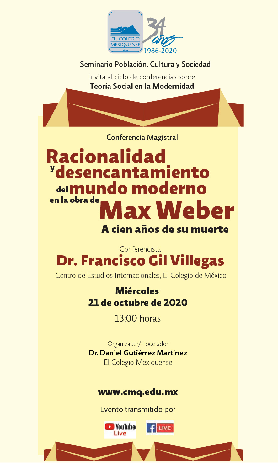Conferencia Magistral: Racionalidad y desencantamiento del mundo moderno en la obra de Max Weber. A cien años de su muerte