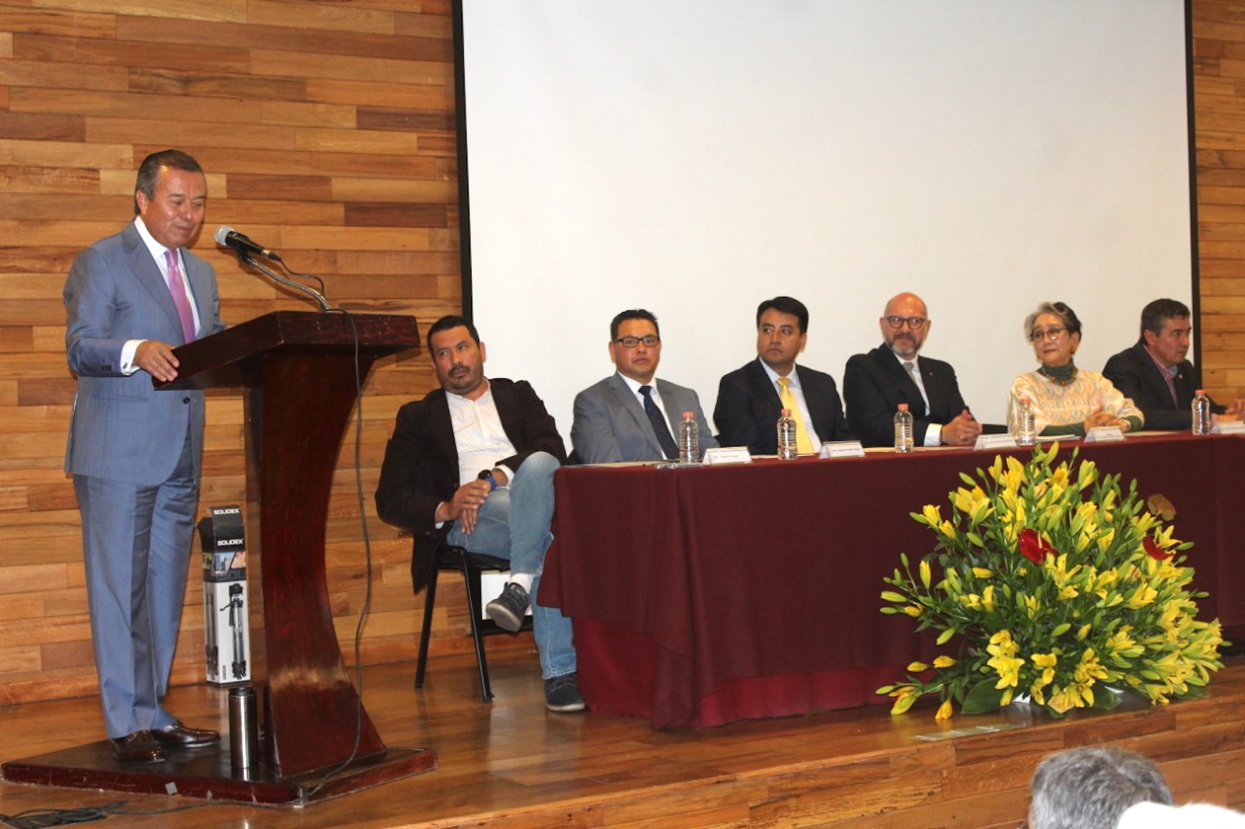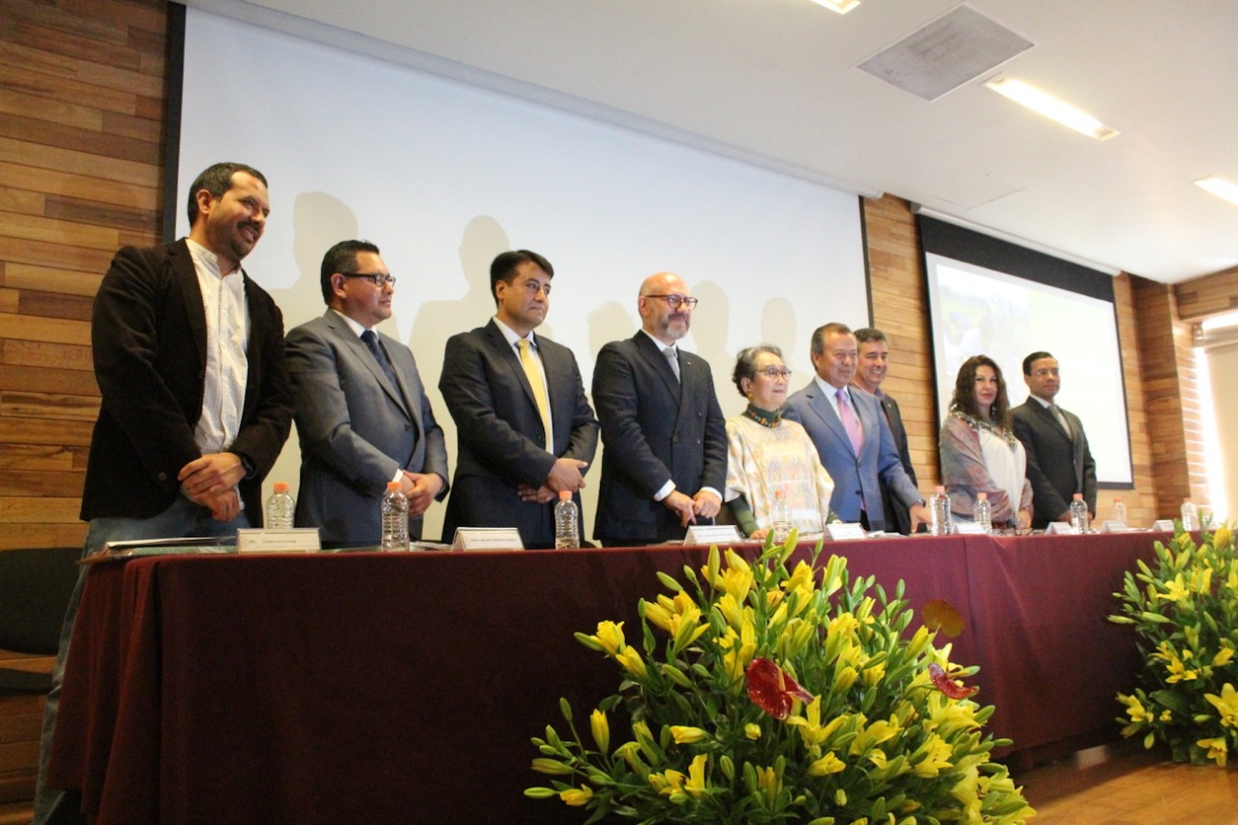 Acudieron además la directora de la Escuela Nacional de Antropología e Historia (ENAH), Julieta Valle Esquivel; Alfonso Sandoval Álvarez, director de Patrimonio Cultural del gobierno del Estado de México, e Ignacio Medina Alegría, director de la facultad de Antropología de la UAEM.