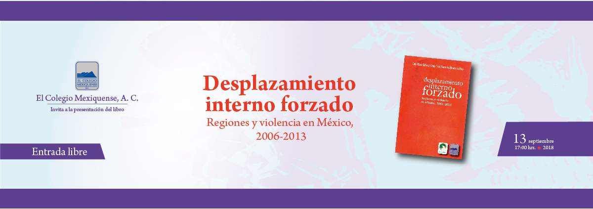 Desplazamiento interno forzado. Regiones y violencia en México, 2006-2013, de los profesores-investigadores de El Colegio Mexiquense, A. C., Luz María Salazar Cruz y José Antonio Álvarez Lobato, es el resultado de una investigación que presenta las dimensiones geográficas y humanas de un fenómeno que está asociado, durante el periodo estudiado, a la violencia del crimen organizado, los grupos paramilitares y las fuerzas policiacas y castrenses.