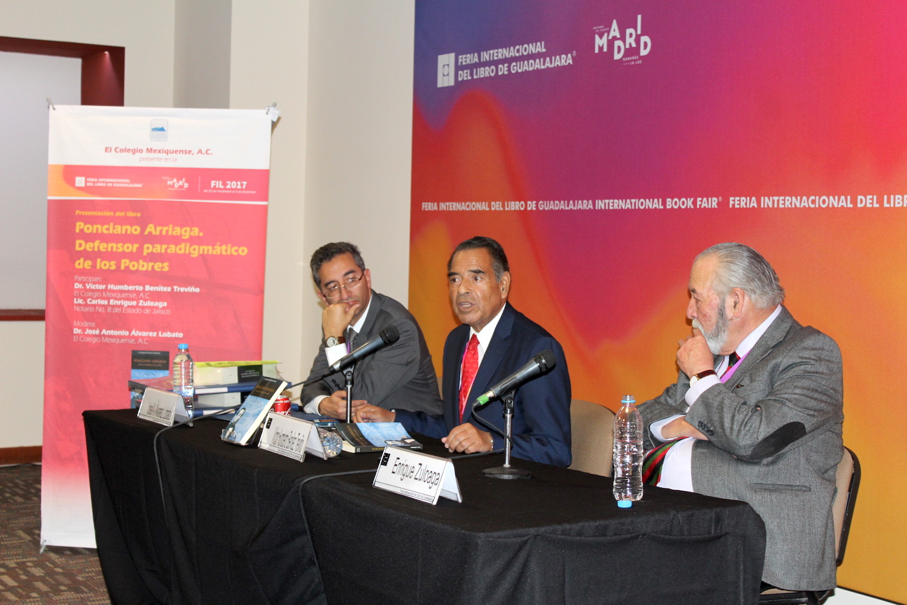 La presentación de Ponciano Arriaga, defensor paradigmático de los pobres, se realizó en el salón B del área internacional de la Expo Guadalajara, en donde se desarrolla la xxxi edición de la Feria Internacional del Libro que en esta ocasión está dedicada a Madrid, con la participación de personalidades de renombre mundial.