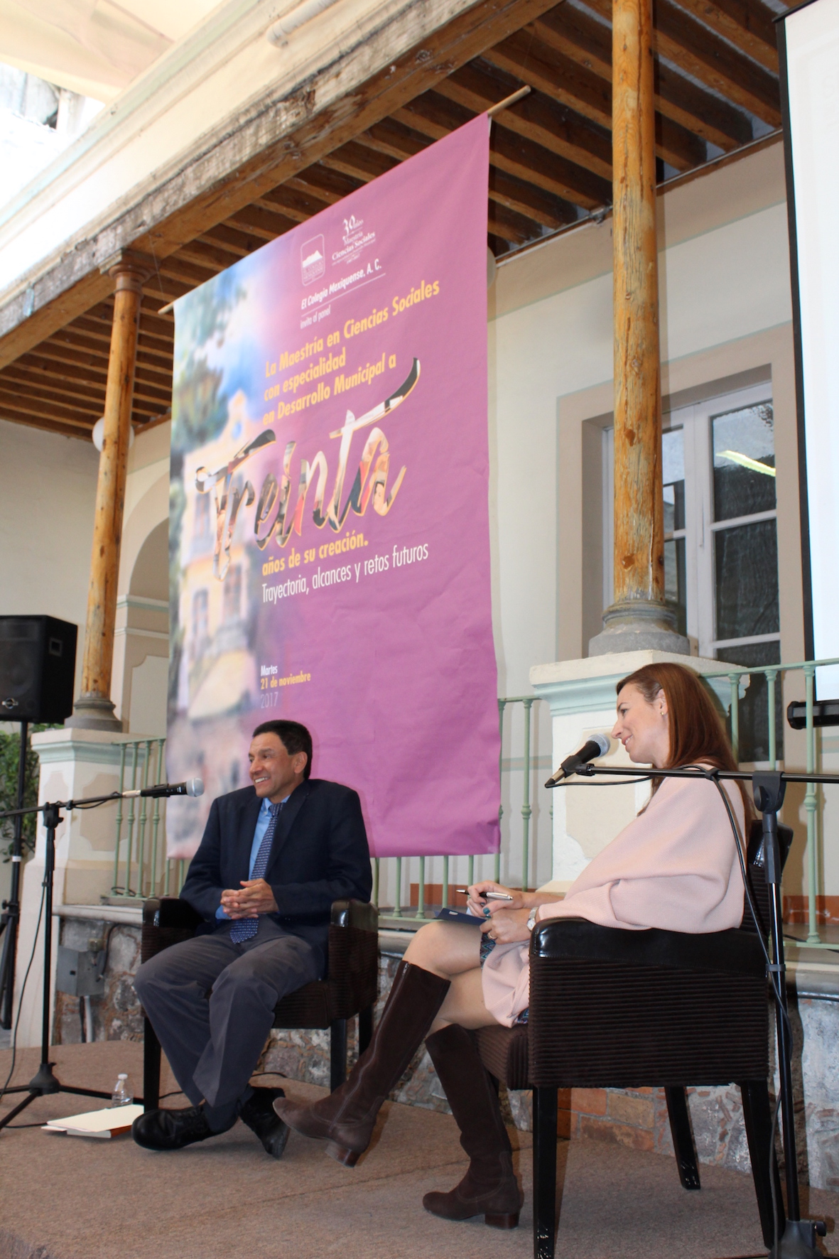 Luego de las participaciones de los investigadores María Teresa Jarquín Ortega, en cuya administración como presidenta der El Colegio Mexiquense, A. C., nació la maestría, y Alfonso Iracheta Cenecorta, también ex presidente, así como Cecilia Cadena Inostroza, coordinadora del doctorado en Ciencias Sociales, el presidente actual de la institución, Víctor Humberto Benítez Treviño, destacó la necesidad de que la maestría siga estando especializada en el desarrollo municipal.