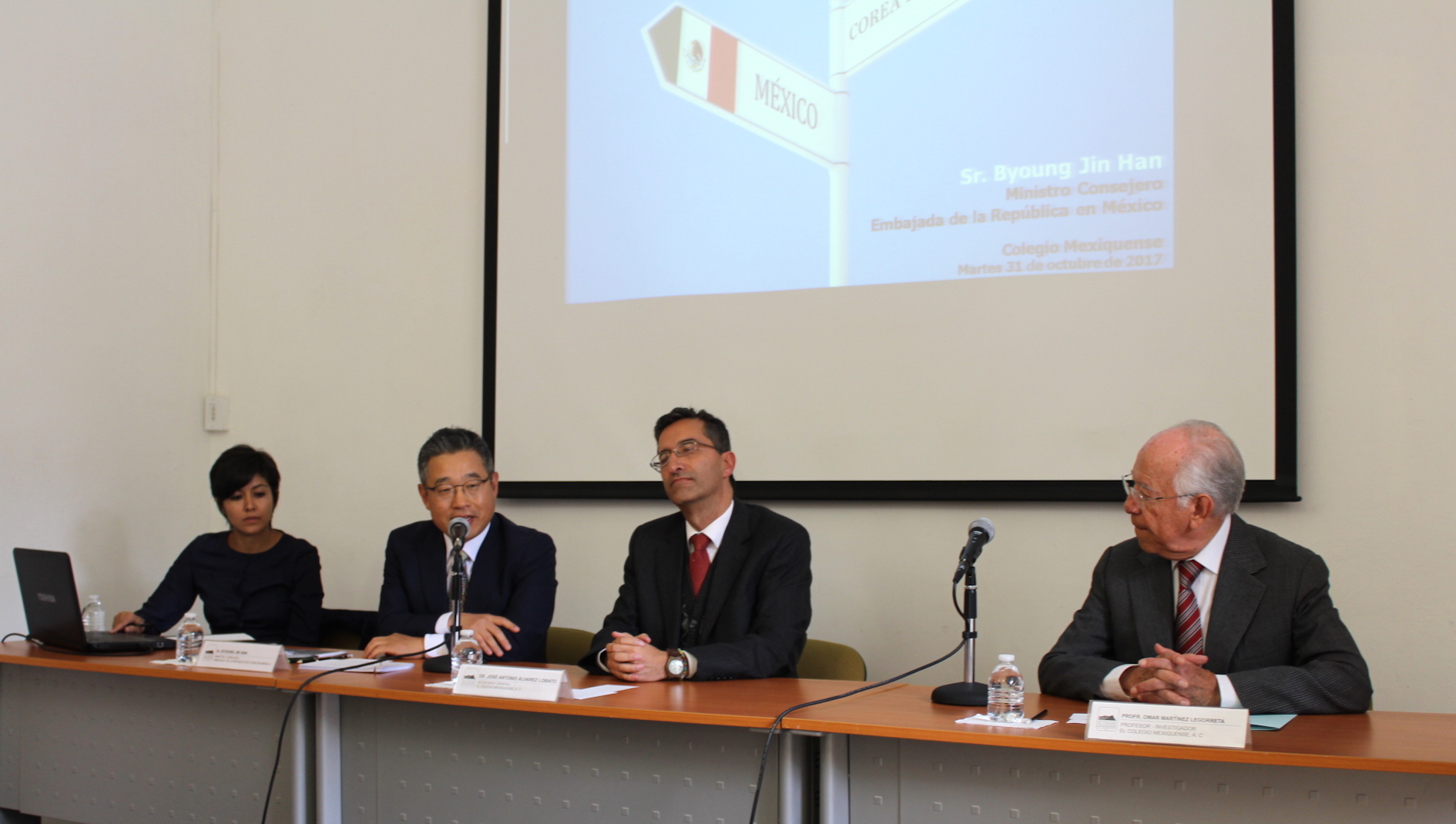 En la conferencia que ofreció en el ciclo «México y las relaciones con sus socios estratégicos de Asia Pacífico», organizado por el internacionalista Omar Martínez Legorreta, investigador de El Colegio Mexiquense, A. C., el diplomático detalló las posibilidades de un eventual tratado, sobre todo en desarrollo tecnológico y apertura de otros mercados para ambas naciones, pero no eludió hablar de las tensiones que Corea del Norte ha causado en la región, ante lo cual se inclinó por el diálogo y la desnuclearización, y sostuvo la certeza de que no habrá guerra.