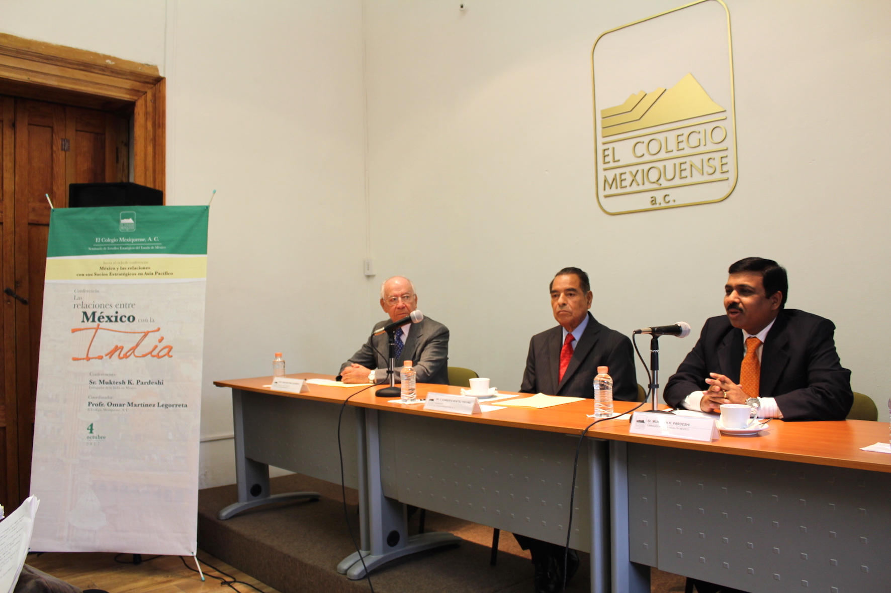 En la presentación de la conferencia, el presidente de El Colegio Mexiquense, A.C., Víctor Humberto Benítez Treviño, expuso que India se perfila como uno de los socios estratégicos de México, a pesar de que nuestro país ha visto demasiado hacia el Norte, y destacó que el grupo G-77 reúne a los países que tienen más de 60 % de la población del mundo; México, añadió, tiene que ver también al Sur, a sus hermanos latinoamericanos.