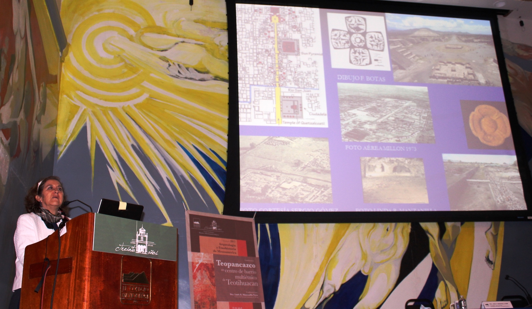 En una conferencia extraordinaria por su claridad y la cantidad y calidad de los datos que ofreció en ella, titulada “Teopancazco, un centro de barrio multiétnico de Teotihuacan", Linda Rosa Manzanilla Naim, investigadora de la Universidad Nacional Autónoma de México, esatuvo en El Colegio Mexiquense, A. C., a invitación del seminario 2017 Arqueología y Etnohistoria de Mesoamérica.