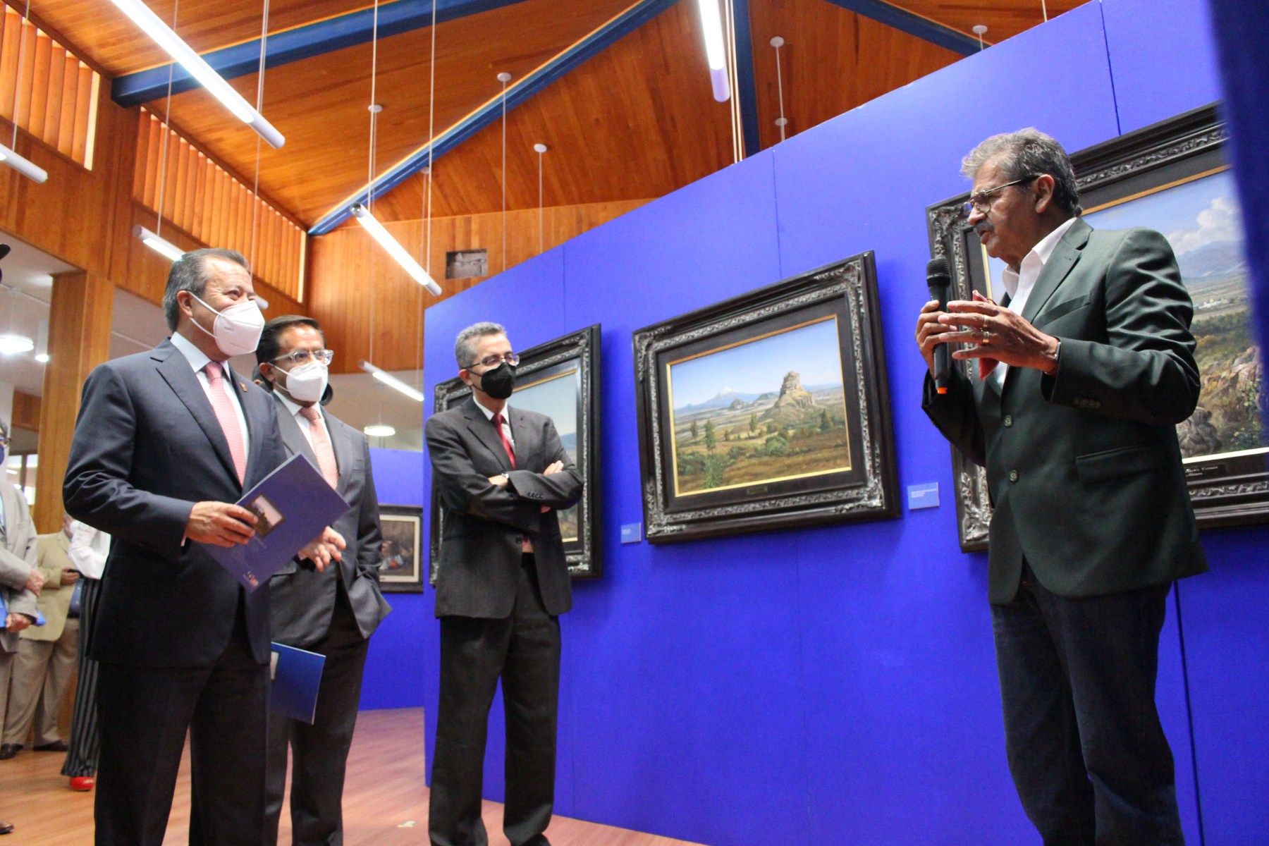 Luego de hacer el recorrido por la feria en el patio de la casona de El Colegio y de agradecer el apoyo de la Universidad Autónoma del Estado de México que ofrece servicio de transporte a las 10:00 AM y a las 14:00, desde edificio de Rectoría y de regreso, César Camacho y Rafael Huerta Carreón inauguraron la exposición del pintor, la cual está integrada por 16 piezas, entre el las que se incluyen un retrato de Morelos, una naturaleza muerta y un acrílico, de un conjunto formado mayoritariamente por óleos.