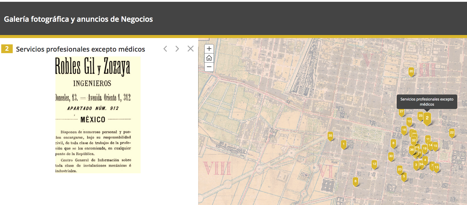 El micrositio y el libro electrónico al alcance de quien tenga interés se titulan Los negocios y su dimensión espacial. La Ciudad de México en el directorio comercial de Jerónimo Figueroa Doménech, 1899, que hace una clasificación en 17 grupos, por giros y ramos, mediante la cual se pueden localizar desde negocios de venta de telas y comercios hasta hospitales.