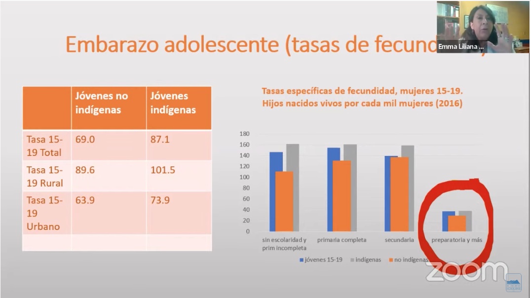 La investigadora explicó que, de acuerdo a las cifras de la OCDE, México tiene una de las tasas de fecundidad más altas, pues 9 de cada 100 mujeres entre los 15 y 19 años han tenido un hijo, y una de cada 100 ha tenido dos o más hijos.