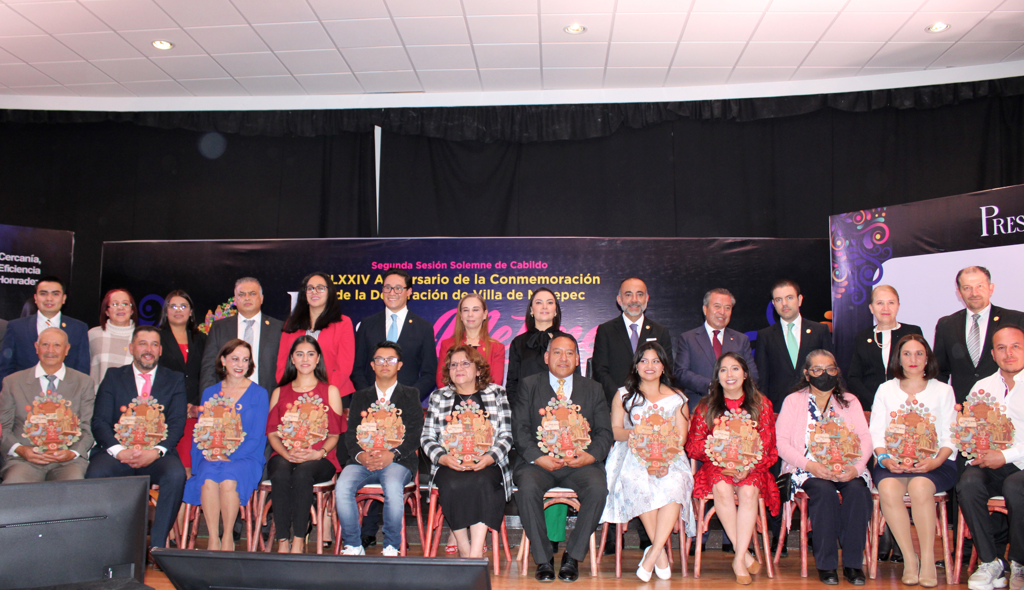 En el auditorio Sor Juana Inés de la Cruz del Museo del Barro, donde se celebró la segunda sesión solemne de cabildo para entregar la Presea Metepec 2022 a 15 metepequenses que han sobresalido en diversos rubros, César Camacho, quien la recibió en la categoría al Mérito Social y Político, habló en nombre de los galardonados.
