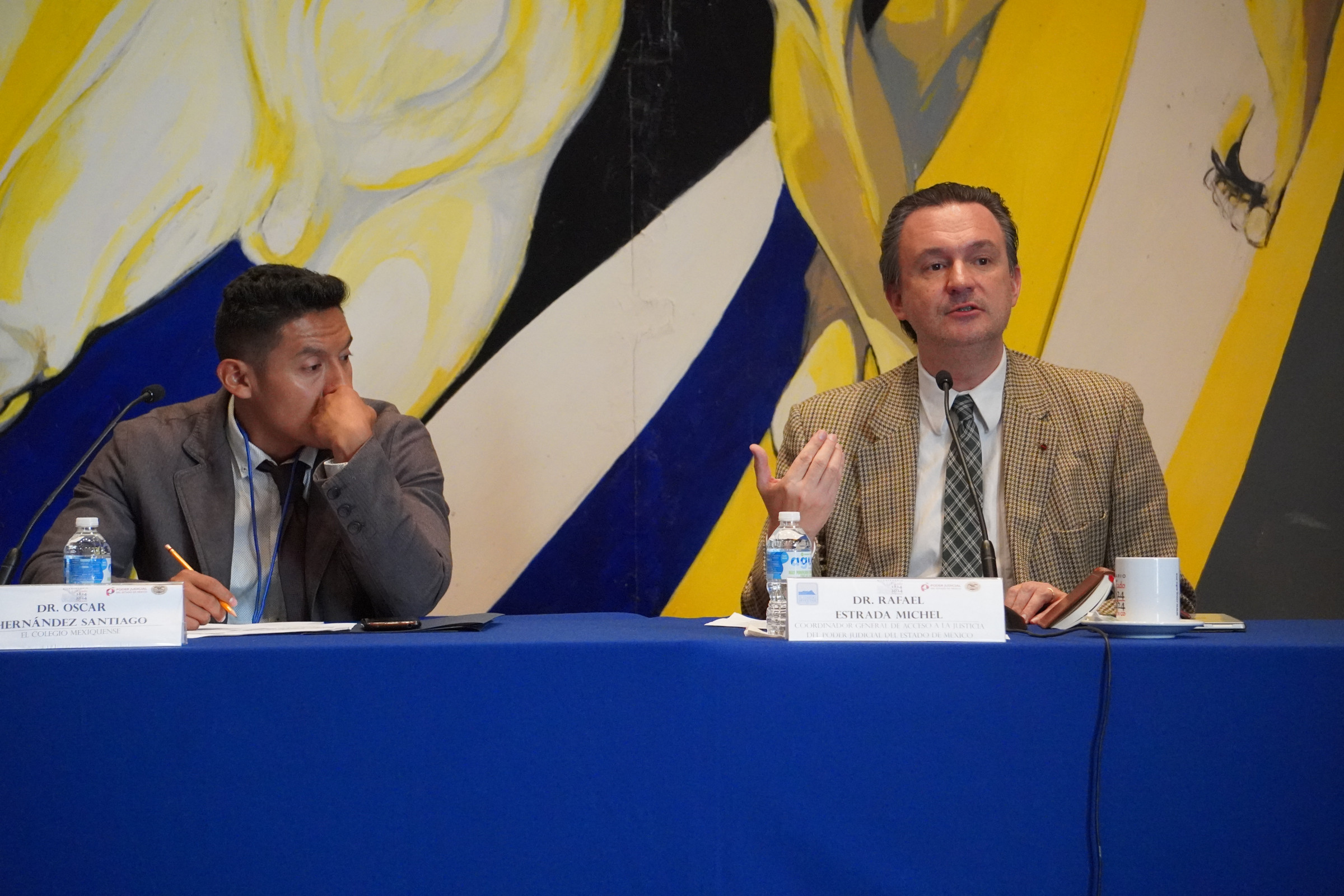 Por la mañana, en la conferencia magistral, Rafael Estrada Michel, coordinador general de Acceso a la Justicia, representó al presidente del Tribunal Superior de Justicia, magistrado Ricardo Sodi Cuéllar, y ofreció una exposición muy detallada de la supervivencia de elementos de la Constitución de Cádiz en las constituciones del país durante el siglo XIX.
