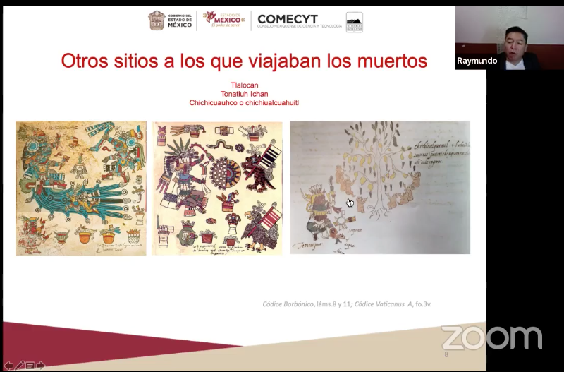 A partir de códices prehispánicos y coloniales, las evidencias de restos arqueológicos y la cerámica, y diversas fuentes, se refirió en concreto a Mesoamérica, con énfasis en los pueblos nahua y otomiano, y dijo que aquellas sociedades que nos antecedieron también tuvieron una manera de enfrentar y entender la muerte, con creencias y prácticas.