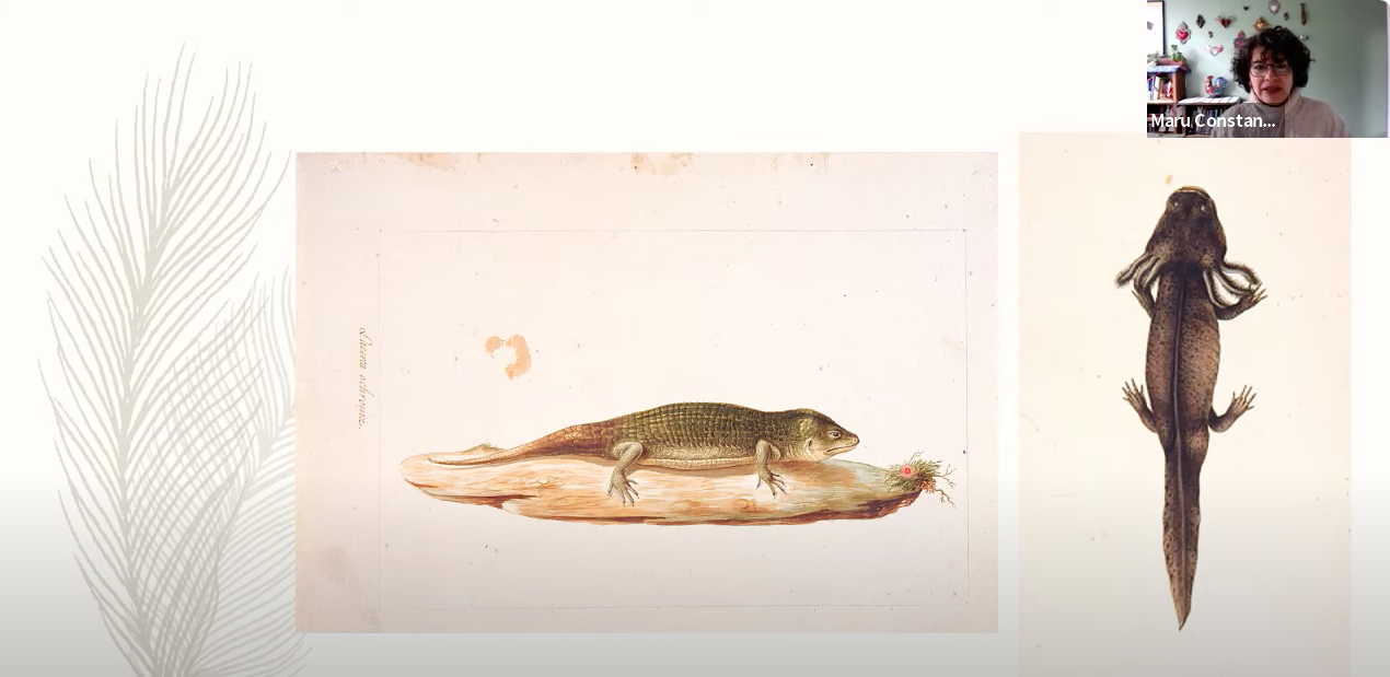 En su exposición fueron recurrentes las referencias a la Real Expedición Botánica a la Nueva España que guiaron José Mariano Mociño y Martín de Sessé, las ilustraciones en dibujos y grabados que se hicieron a lo largo de un periodo muy dilatado, muchas veces de oídas porque el dibujante no podía ver al animal, e igualmente la forma como los gabinetes de colecciones fueron diversificando lo que guardaban, tanto como la forma de conservarlo.